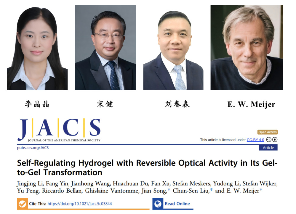 近日,郑州轻工业大学新能源学院刘春森教授、河南工业大学李晶晶博士、荷兰埃因霍温理工大学E. W. Meijer教授、天津大学宋健教授合作,在化学类顶刊J. Am. Chem. Soc.上发表了题为“Self-Regulating Hydrogel with Reversible Optical Activity in Its Gel-to-Gel Transformation”的研究论文。这是郑州轻工业大学首次以第一通讯单位在该期刊上发表论文。
