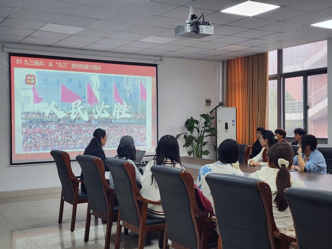 孙琳以2025年“九三”阅兵的震撼场景为切入点,围绕“九三阅兵的时代意义”“抗战历程回顾”“抗战精神内涵”和“吾辈担当”四个部分层层深入,带领同学们回顾了从“九一八”事变到日本签署投降书的十四年艰苦卓绝的抗战历程,通过一系列英雄事迹,深刻阐释了伟大抗战精神的时代内涵。接着,孙琳强调,铭记历史是为了缅怀先烈、珍视和平、开创未来。她寄语青年学生要筑牢信仰之基,坚定理想信念,弘扬以爱国主义为核心的民族精神,深刻践行社会主义核心价值观;要立稳精神之柱,增强国家安全意识,深刻认识个人前途与国家命运的紧密联系,自觉将人生理想融入党和人民的事业之中;要践行奋斗之志,保持“乱云飞渡仍从容”的定力,勇挑重担,在实现民族复兴的赛道上奋力奔跑。