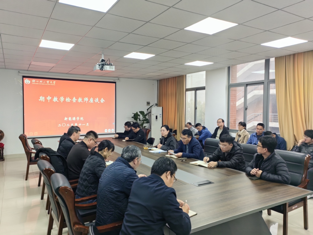 为全面了解本学期教学运行情况,优化教学过程管理,提升教育教学质量。11月7日下午,新能源学院在315会议室召开期中教学检查教师座谈会。学院班子成员、各系(中心)负责人、学院督导组成员及全体教师参加座谈会。会议由王诗文副院长主持。