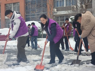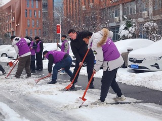 活动中,志愿者们分组协作,手持铁锹、扫帚等工具,全力投入到积雪清理工作中。大家齐心协力、配合默契,采用推、铲、清等多种方式,有序推进扫雪进度。部分区域积雪厚重、落叶混杂,清理难度较大,但志愿者们不畏严寒、干劲十足,挥锹破冰、清扫残雪、清理落叶,现场忙碌而有序。经过连续的奋战,学院附近的小道积雪冰层被有效清除,为师生开辟出安全畅通的出行通道,志愿者们忙碌的身影成为冬日校园里一道温暖而亮丽的风景。