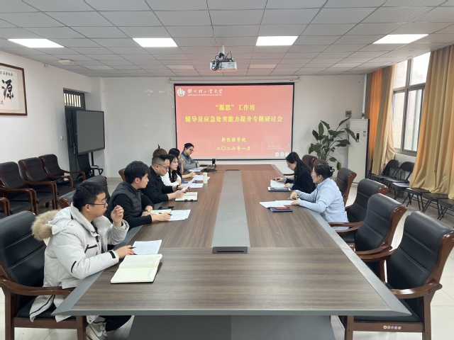 为切实提升辅导员队伍应急处突能力,进一步筑牢校园安全防线,近日,新能源学院举办“源思”工作坊——辅导员应急处突能力专题研讨会。学院全体辅导员参加研讨,学院党委书记孙琳出席会议,会议由学院副书记李辉主持。